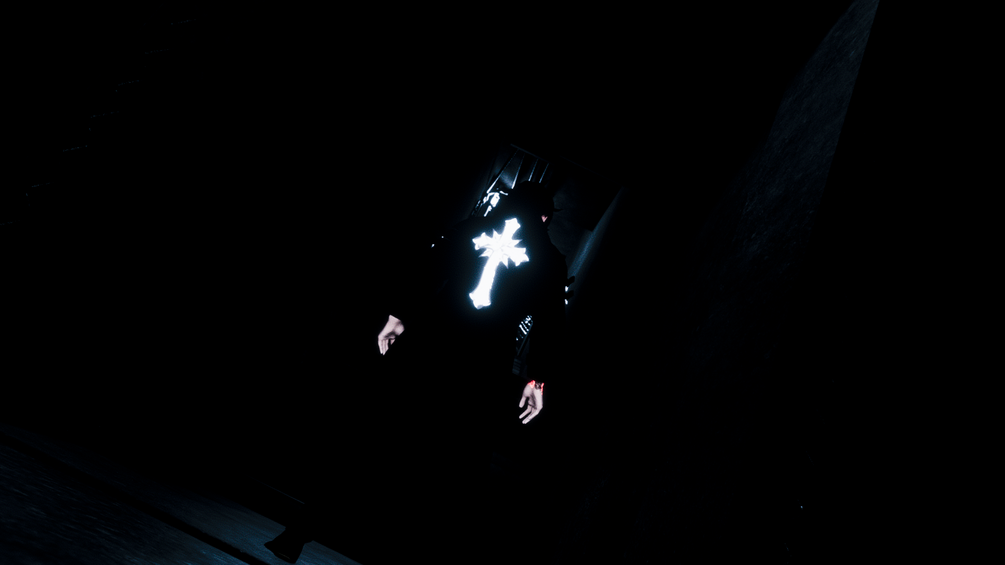 Toogle: glasses, jacket, chest crucifix, shirt, pants and shoes. when removing the pants, the DPS will appear activating.